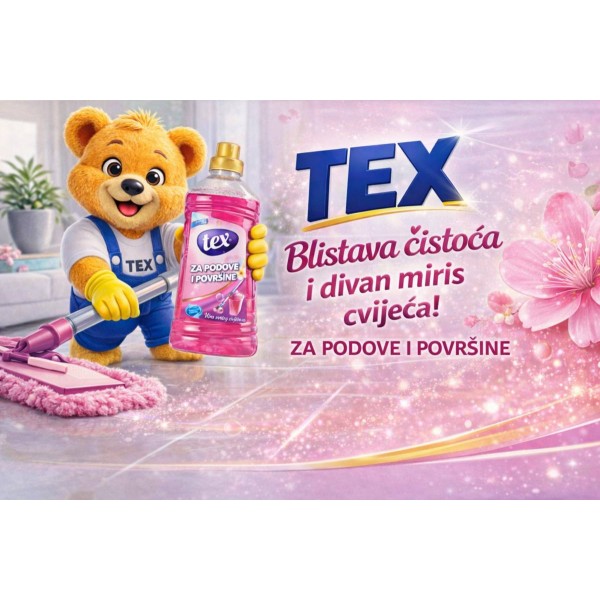 Tex sredstvo za podove i površine učinkovito čisti podove i druge perive površine te ostavlja dugotrajan miris vrtnog cvijeća. Formula brzo uklanja prljavštinu i masnoću, a prostor ostavlja čistim, svježim i urednim.
