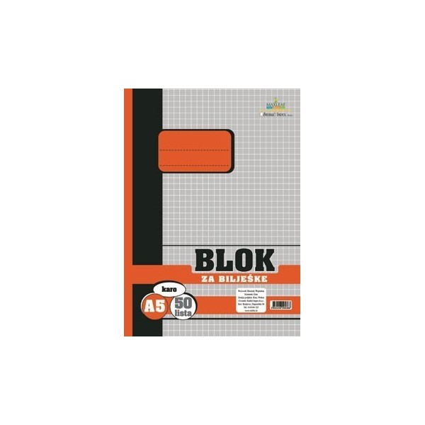 Blok za bilješke, A5 karo dimenzije 14,8x21cm 50lista