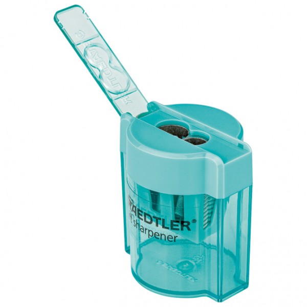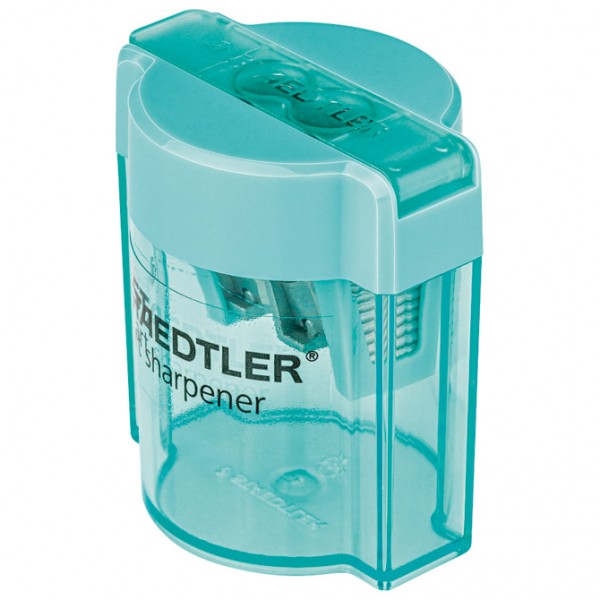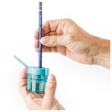metalno; s PVC kutijom; 2 rupe; za olovke standardne debljine do fi: 8,0 mm sa kutom šiljenja od 23° (grafitne) i 30° (drvene bojice) te Jumbo olovke (grafitne olovke i drvene bojice) debljine do fi: 11 mm sa kutom šiljenja od 30°; sigurnosni zatvarač koji sprečava slučajno otvaranje; blister