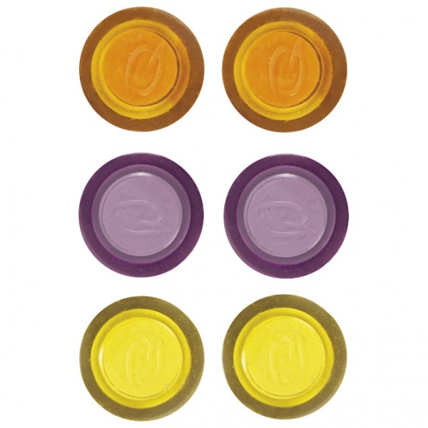 okrugli; fi: 3 cm; set od 6 komada; boje: ljubičasta, narančasta i žuta; blister